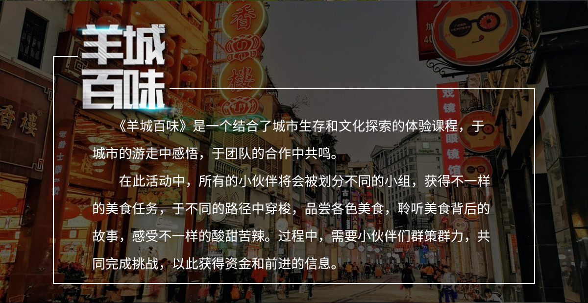 《羊城百味》是一个结合了城市生存和文化探索的体验课程,于城市的游走中感悟,于团队的合作中共鸣。